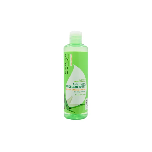 محلول پاک کننده میسلارواتر شون با فرمولاسیون ملایم و عصاره آلوئه ورا و چای سبز، منافذ پوست را عمیقاً پاکسازی، رطوبترسانی و تغذیه میکند. ضد التهاب، بدون الکل و آنتیاکسیدان است که از پیری زودرس و تحریکات پوستی جلوگیری میکند. مناسب انواع پوست و همه سنین.
